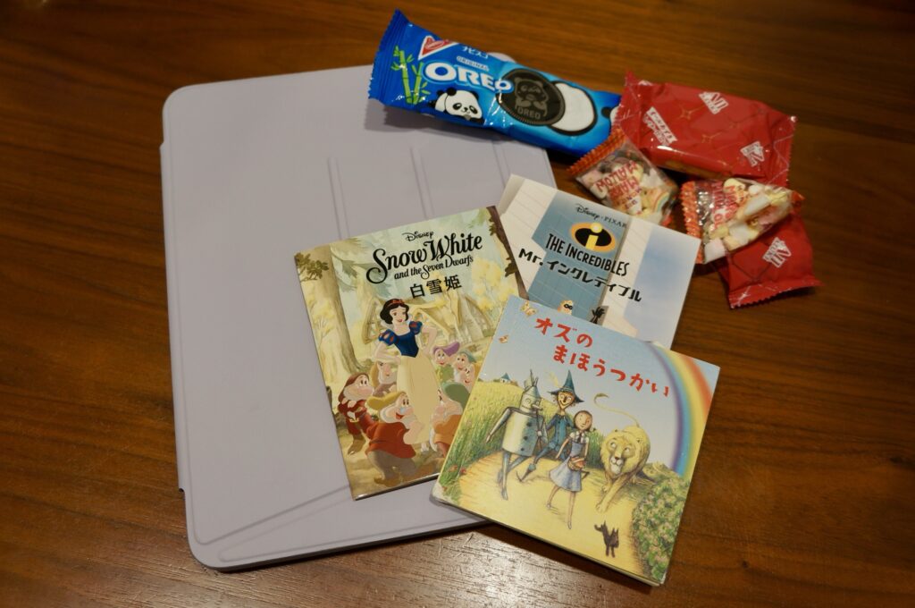 暇つぶしが用意できると滞在中の“ぐずり”が激減する。ジップ袋に入れて持ち運ぶと便利。 - 就寝時のライト(小さめ)
